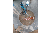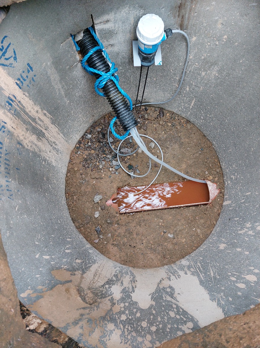 The AVFM was placed into the outlet sewer pipe on-site, to measure the amount of treated wastewater being pumped from the site. It was installed by the customer approximately 0.25 meters (10 inches) from the pipe opening facing the oncoming flow.
