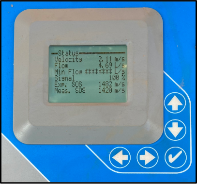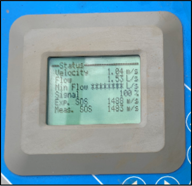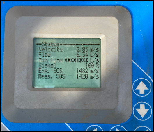 Again, thanks to Freddie the FlowPulse, the end-user already had a bit of an idea of what the flow rate should be through the pipe. So, Marc entered the correct parameters and connected Tommy’s small pipe sensors to the pipe and the correct flow reading was seen straight away, with the speed of sound expected and measured looking exceptionally good.