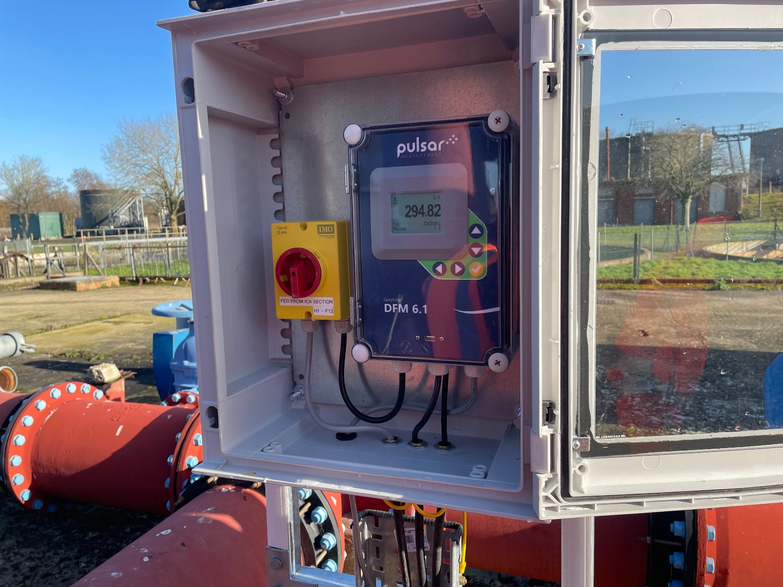 The raw untreated wastewater flowed through a concrete pipeline 350 mm in diameter at a different location but on the same site. Because the wastewater in this pipe is untreated, it’s likely to have suspended solids and air present which could make it difficult for the transit-time technology to obtain a reliable reading. Luckily, the Pulsar Measurement portfolio offers a wide range of technologies, so Marc Richards was able to suggest a solution, the DFM 6.1 Doppler Flow Meter.